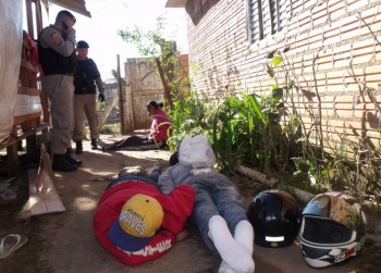 Na revista, os policiais encontraram dois tijolos de maconha escondidos embaixo do banco da moto. Após, com ajuda de cães farejadores, foram feitas buscas na casa e no terreno. A cadela Sofia, - uma Ladradora – entrou embaixo do porão da casa de onde saiu com uma sacola plástica com mais três tijolos de maconha.